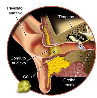 O sistema auditiva é anatomicamente dividido em Orelha externa (pavilhão auricular e Conduto Auditivo Externo), orelha média e interna. Na orelha externa a pele da parte exterior do canal tem glândulas especiais que produzem cera. Esta cera é uma armadilha para poeira e partículas de sujeira. Normalmente, a cera se acumula um pouco, seca, e em seguida, vem caindo fora do ouvido, levando sujeira e poeira com ele. Ou pode lentamente migrar para o exterior.